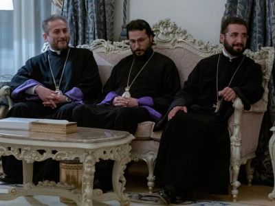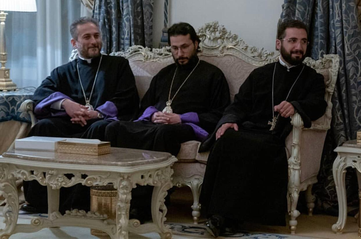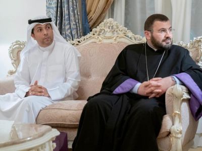 Members of the retinue of His Holiness were His Grace Bishop Armash Nalbandyan, Primate of the Armenian Diocese of Damascus; His Grace Bishop Moushegh Babayan, Director of the Administrative Department of the Mother See; Very Rev. Fr. Shahe Ananyan, Director of the Ecumenical Relations Department of the Mother See of Holy Etchmiadzin; and Rev. Fr. Karekin Hambardzumyan, Dean of the Gevorkian Theological Seminary. During the visit the Catholicos of All Armenians was accompanied by His Grace Bishop Mesrop Sargsyan, Patriarchal Vicar of the UAE and Armenian Diocese of Qatar (Catholicosate of the Great House of Cilicia).