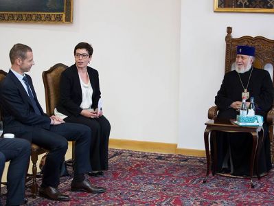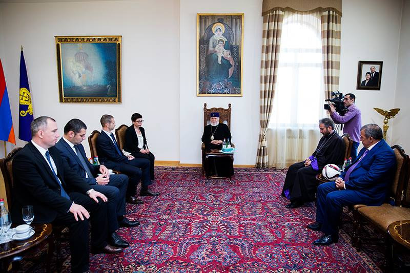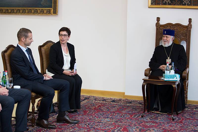 On April 12, in the Mother See of Holy Etchmiadzin, His Holiness Karekin II, Supreme Patriarch and Catholicos of All Armenians; received Mr. Aleksander Čeferin, the Union of European Football Associations (UEFA) President. He was accompanied by Mr. Ruben Hayrapetyan, President of the Football Federation of Armenia.