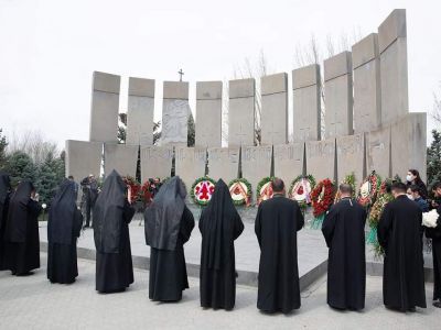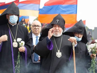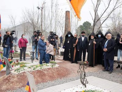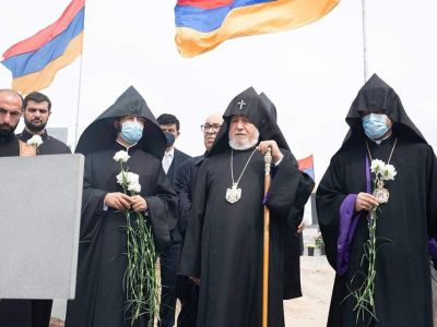 Following the placing of a ceremonial wreath, the Armenian Pontiff prayed to Almighty God for the rest of the souls of the heroes who martyred for the peaceful and secure life of the homeland.