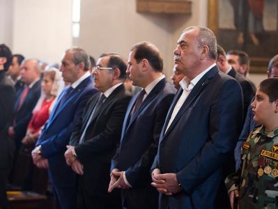 The sacred service was attended by Lieutenant General Manvel Grigoryan, Volunteer Defenders Union Chairman; Mr. David Tonoyan, Minister of Emergency Situations of Armenia; Mr. Karen Grigoryan, Mayor of Etchmiadzin; RA National Assembly deputies; members of the Volunteer Defenders Union; representatives of regional councils and territorial departments; and young and junior volunteer defenders.