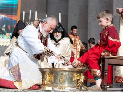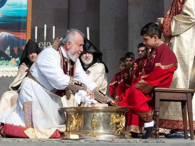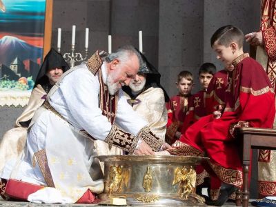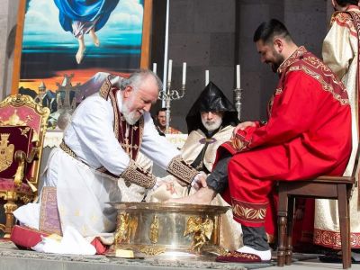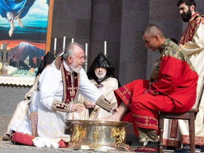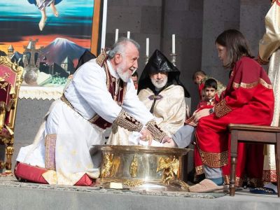 On April 6, on Holy Thursday, under the presidency of His Holiness Karekin II, Supreme Patriarch and Catholicos of All Armenians; the Washing of the Feet Service was offered on the St. Trdat Open Air Altar of the Mother See of Holy Etchmiadzin.