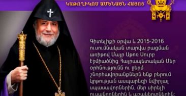 Message of Congratulations from the Catholicos of All Armenians on the Day of Knowledge-2016