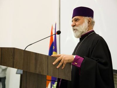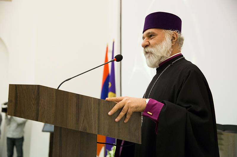 Տերունական աղոթքից հետո ողջույնի խոսքով հանդես եկավ Մայր Աթոռի միաբան Տ. Նաթան արքեպիսկոպոս Հովհաննիսյանը: Սրբազան Հայրը խորհրդանշական նկատեց, որ հայ մշակույթին նվիրված այս միջոցառումն անցկացվում է մեծանուն Կոմիտաս վարդապետի ծննդյան օրը: Խոսելով ներկայացված հրատարակությունների մասին` Նաթան արքեպիսկոպոսը անդրադարձավ հայ մշակութասեր հասարակությանը և աշխարհին այս նախագծի միջոցով մատուցվող արժեքավոր ընծային: Սրբազանը կարևորեց նախագծին մասնակցած բոլոր անձանց ջանքերը` ուղղված հայոց մեծ և հին մշակույթի պահպանությանն ու հոգատարությանը: