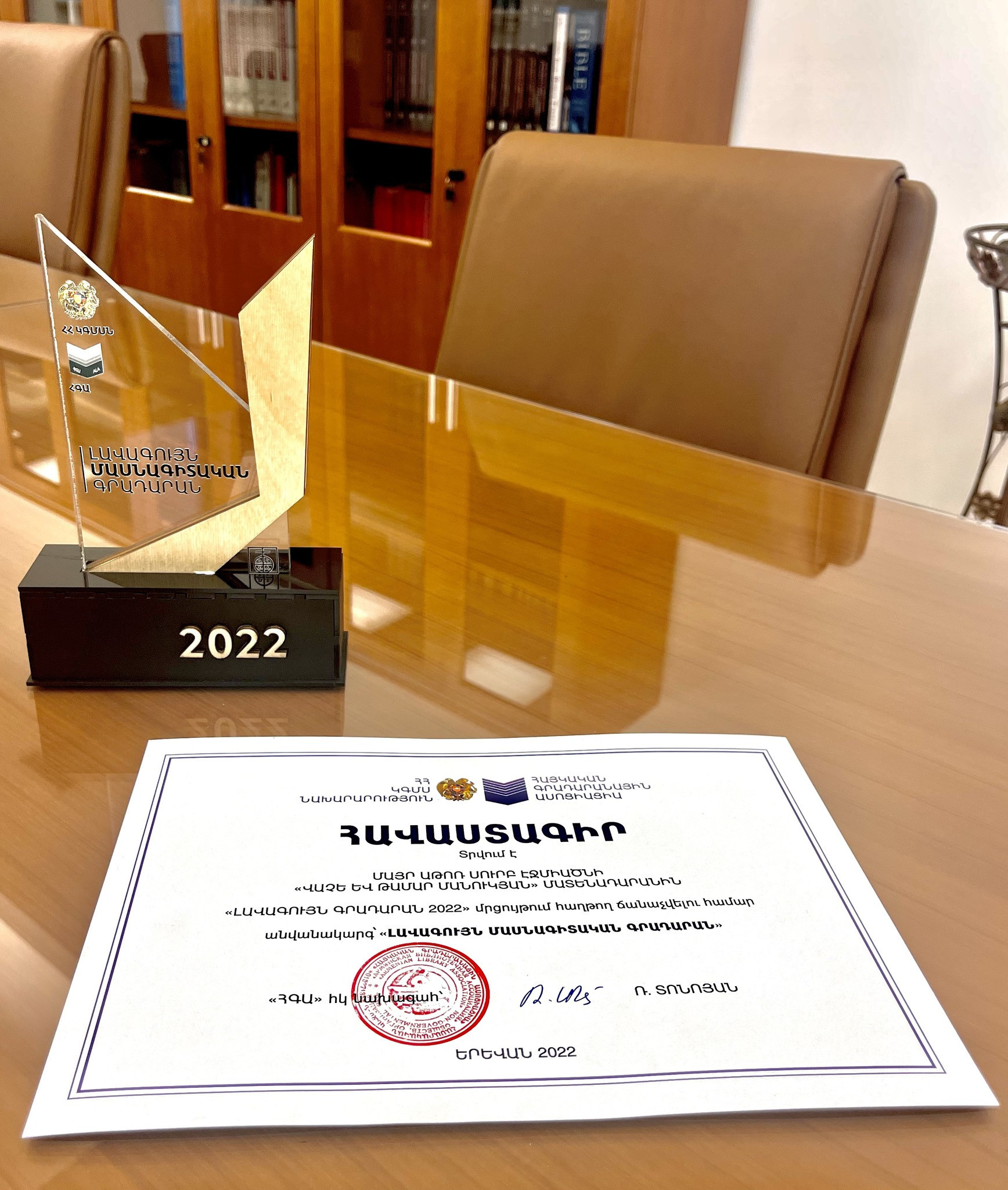 «Վաչե և Թամար Մանուկյան»  Մատենադարանը հաղթող է ճանաչվել «Լավագույն մասնագիտական գրադարան» անվանակարգում 07.10.2022