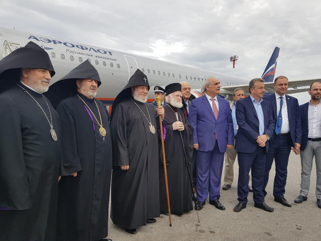 Ամենայն Հայոց Կաթողիկոսին մասնավորապես ողջունելու էին եկել Հույն Ուղղափառ Եկեղեցու Կրետեի Նորին Սրբազնություն Իրենեոս Արքեպիսկոպոսը, Հունաստանի ԱԳ փոխնախարար Մարկոս Բոլարիսը, Կրետեի նահանգապետ Ստավրոս Առնաուտակիսը: Նորին Սրբությանն օդանավի մոտ դիմավորեցին նաև Կ. Պոլսի Հայոց պատրիարքական փոխանորդ Գերաշնորհ Տ. Արամ արքեպիսկոպոս Աթեշյանը, Հունաստանում Հայաստանի Հանրապետության արտակարգ և լիազոր դեսպան Ֆադեյ Չարչողլյանը, Հայաստանի Աստվածաշնչային ընկերության գլխավոր քարտուղար Գերաշնորհ Տ. Եզնիկ արքեպիսկոպոս Պետրոսյանը, Ռուսաստանի և Նոր Նախիջևանի Հայոց թեմի առաջնորդ Գերաշնորհ Տ. Եզրաս արքեպիսկոպոս Ներսիսյանը, Հունաստանի Հայոց թեմի առաջնորդական տեղապահ Հոգեշնորհ Տ. Խորեն վարդապետ Առաքելյանը, Կ.Պոլսի Հայոց Պատրիարքության միաբան Հոգեշնորհ Տ. Եղիշե վարդապետ Ուչքունյանը, Հունահայոց թեմի Թեմական խորհրդի ատենապետ Մերուժան Հարթենյանը, Կրետեի հովվության ծխական խորհրդի ատենապետ Անտոնիս Բենարդին և գանձապահ Սանտի Ավետիսյանը: