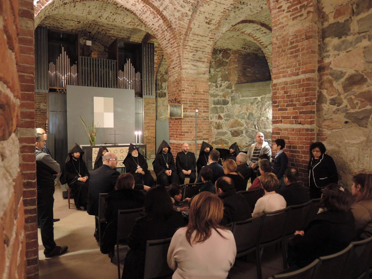 Մարտի 19-ին, Ֆինլանդիա կատարած միջեկեղեցական այցի շրջանակներում, Հելսինկիի Լութերական-Ավետարանական Մայր Տաճարի սրահում Ն.Ս.Օ.Տ.Տ. Գարեգին Բ Ծայրագույն Պատրիարք և Ամենայն Հայոց Կաթողիկոսը հանդիպում ունեցավ Ֆինլանդիայի հայ համայնքի հետ:
