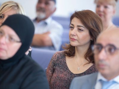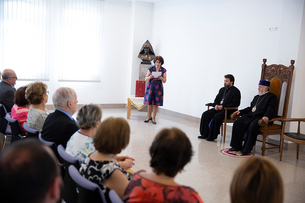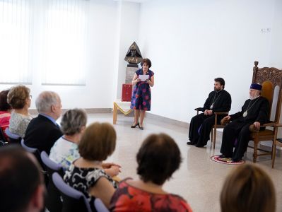 Հանդիպման սկզբում միության ատենապետուհի Անահիտ Տանձիկյանը միության անդամների անունից երախտագիտություն հայտնեց Նորին Սրբությանը միության 60-ամյակի առթիվ Մայր Աթոռի հարկից ներս իրենց հյուրընկալելու համար` նշելով, որ Սուրբ Էջմիածին այցելելու նման հրավերը միության վաթսունամյա գործունեության լավագույն գնահատականն է: