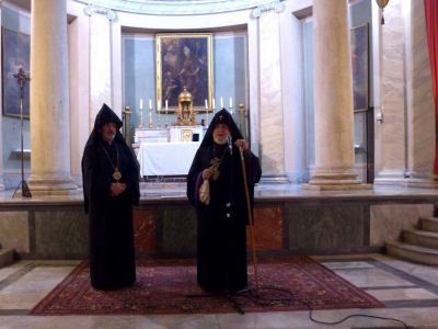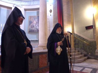 Հանդիպմանը ներկա էին Իտալիո հայոց հոգևոր հովիվ և Արևմտյան Եվրոպայի Հայրապետական պատվիրակի փոխանորդ Հոգեշնորհ Տ. Թովմա վարդապետ Խաչատրյանը, բարձրաստիճան հյուրեր Վատիկանի Սուրբ Աթոռից, Արևելյան Ուղղափառ Եկեղեցիների, ինչպես նաև Իտալիայում և Վատիկանում հավատարմագրված ՀՀ դեսպանատների ներկայացուցիչներ: