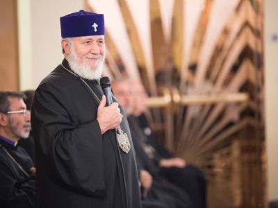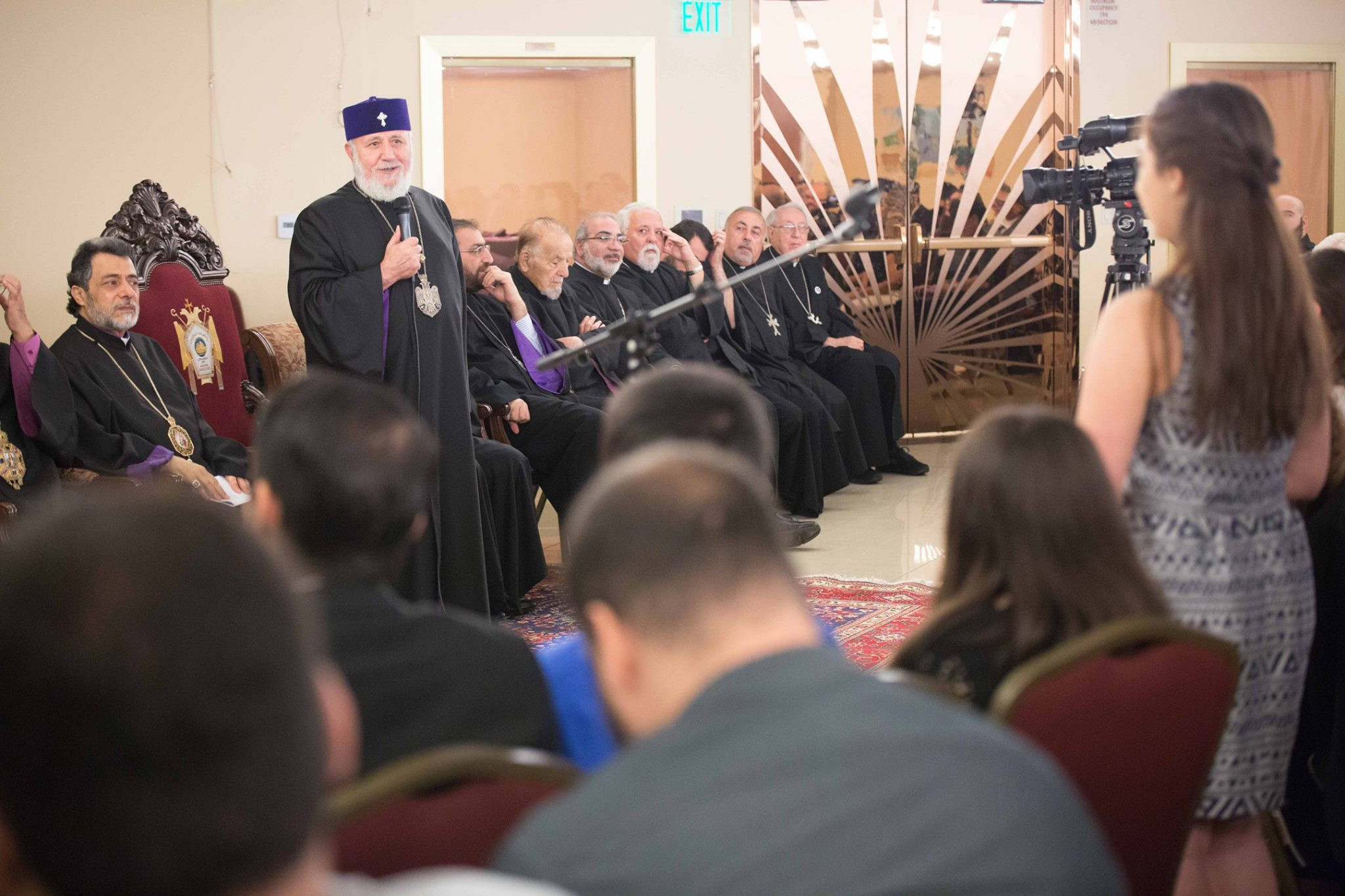 Վեհափառ Հայրապետ- Որտեղ ես եմ հասակ առել, Աստծո մասին խոսել չէր կարելի, հոգևոր կյանքը պարփակված էր եկեղեցու պատերի մեջ և ընտանիքների շրջանակում: Ես իմ առաջին հոգևոր ապրումներն ունեցել եմ իմ ընտանեկան հարկից ներս: Այսօր, փառք Աստծո, դուք ունեք ընտրության ազատությունը: Մենք ուրախ ենք, որ մեր երիտասարդությունը նախանձախնդրորեն ներգրավված է եկեղեցական կյանքում, և այդ շարժումը զորանում է Հայաստանի մեջ; Վստահ եմ, որ այստեղ էլ է նույնը, որովհետև ինչ առաջընթաց որ արձանագրում ենք Հայաստանում, իր արձագանքը անմիջապես գտնում է սփյուռում: