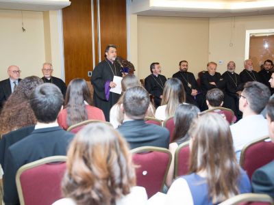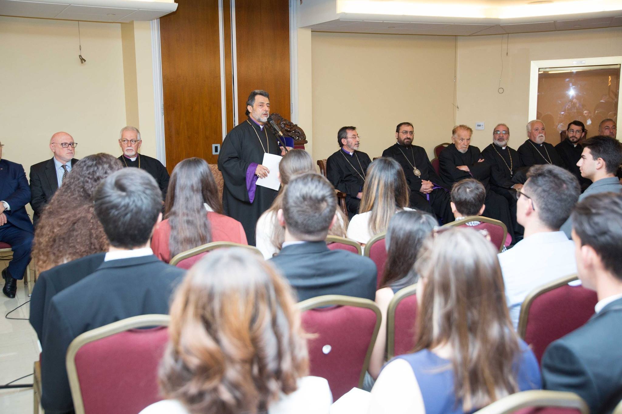 Վեհափառ Հայրապետ- Մեծապես ուրախ ենք այս հանդիպման համար, նման հանդիպումները մեզ ոգևորում, խանդավառում են, ուրախություն բերում մեր հոգուն ու սրտին: Ծառայությունը երիտասարդ սերնդին մեր նվիրական առաքելությունն է, երիտասարդությունը մեր կյանքի խանդավառությունն է և ես ուրախ եմ, որ մեր առաջնորդ սրբազանը այսպիսի շեշտադրում է կատարել իր հոգևոր ծառայության մեջ՝ անհրաժեշտ քրիստոնեական կրթություն ջամբել մեր պատանիներին և երիտասարդներին, որպեսզի զորանաք, աճեք, կրթվեք ու դաստիարակվեք մեր քրիստոնեական լույս հավատքով, ազգային արժեքներով: Որպեսզի լինեք հայրենասեր, աստվածասեր անձեր ազգի համար: Մեր աղոթքն ու բարեմաղթանքն ենք բերում ձեզ՝ պատգամելով, որ շարունակեք կրթել ձեր անձերը, որպեսզի ձեր ամբարած գիտելիքի պաշարով ձեր մեջ ամփոփած արժեհամակարգով կարողանաք փոխել մեր կյանքը և մեր աշխարհը: Աստված օրհնի ձեզ: