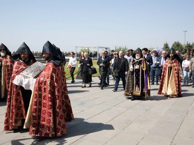 Օրվա առիթով Ծիծեռնակաբերդի հուշահամալիր էր բերվել նաև Հայոց Ցեղասպանության սրբոց նահատակաց մասունքարանը: