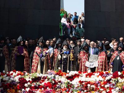 Ապրիլի 24-ին Ն.Ս.Օ.Տ.Տ. Գարեգին Երկրորդ Ծայրագույն Պատրիարք և Ամենայն Հայոց Կաթողիկոսը Մայր Աթոռ Սուրբ Էջմիածնի միաբանների ուղեկցությամբ այցելեց Ծիծեռնակաբերդի հուշահամալիր՝ ոգեկոչելու Հայոց Ցեղասպանության սուրբ նահատակների հիշատակը: