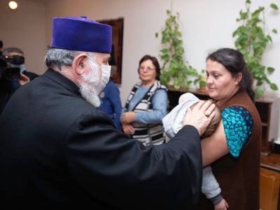 Ամենայն Հայոց Կաթողիկոսն այցելեց Մայր Աթոռի կառույցներում ապաստանած արցախցի ընտանիքներին