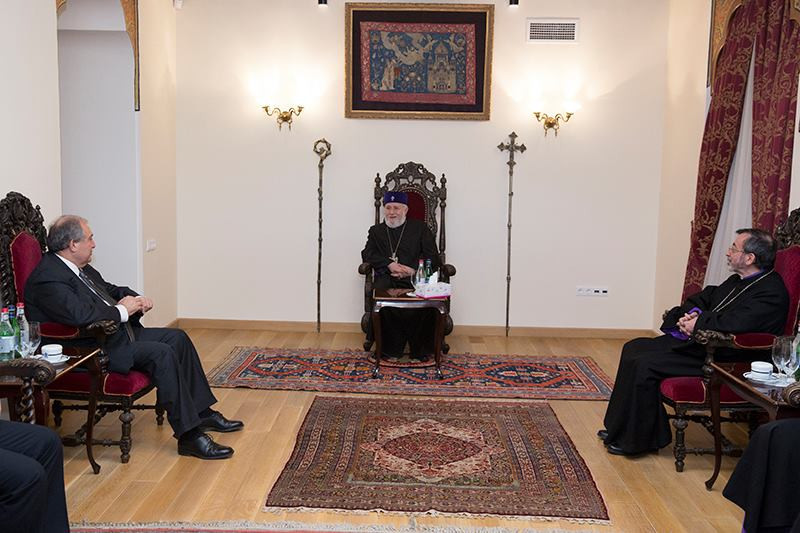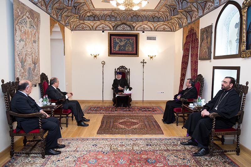 Իր հերթին պրն. Արմեն Սարգսյանը, շնորհակալություն հայտնելով հանդիպման առիթով, Վեհափառ Հայրապետին տեղեկացրեց ազգային կառույցների, հասարակության տարբեր հատվածների և կուսակցությունների հետ ունեցած հանդիպումների և սփյուռքյան համայնքներ ծրագրվելիք այցերի մասին: