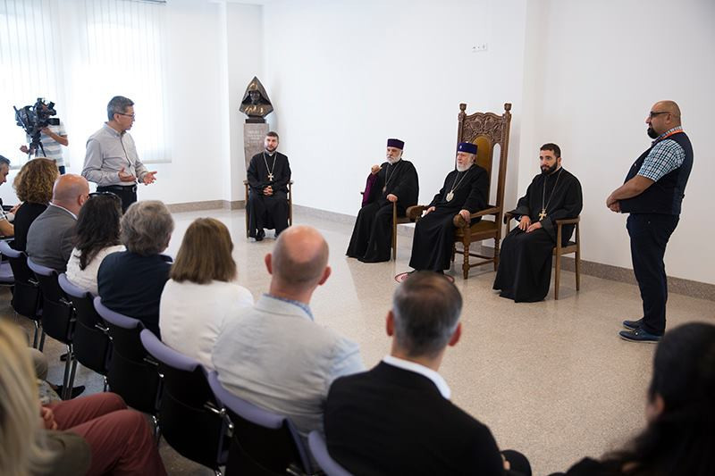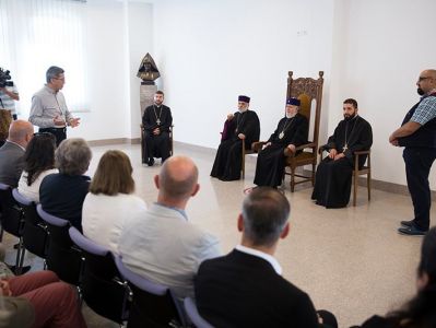 Հանդիպմանը ներկա էին նաև Մայր Աթոռի Արտաքին հարաբերությունների և արարողակարգի բաժնի տնօրեն Գերաշնորհ Տ. Նաթան արքեպիսկոպոս Հովհաննիսյանն ու Գևորգյան հոգևոր ճեմարանի տեսուչ Հոգեշնորհ Տ. Գարեգին վարդապետ Համբարձումյանը: