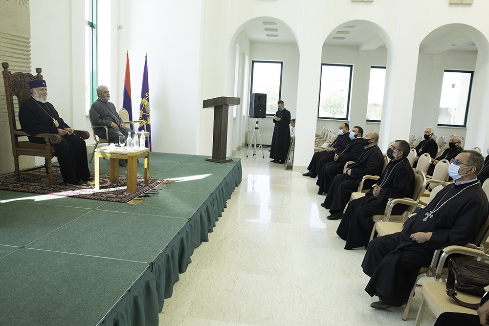 Զրույցի ընթացքում Ամենայն Հայոց Կաթողիկոսը հանգամանորեն անդրադարձավ քահանա հայրերի բարձրաձայնած հարցերին, որոնք վերաբերում էին հովվական ծառայությանը, Եկեղեցու կրթադաստիարակչական և սոցիալական առաքելությանը, համավարակի շրջանում առկա դժվարությունների հաղթահարմանը, ազգային և հայրենական կյանքը հուզող զանազան խնդիրների առնչությամբ Եկեղեցու որդեգրած դիրքորոշումներին:
