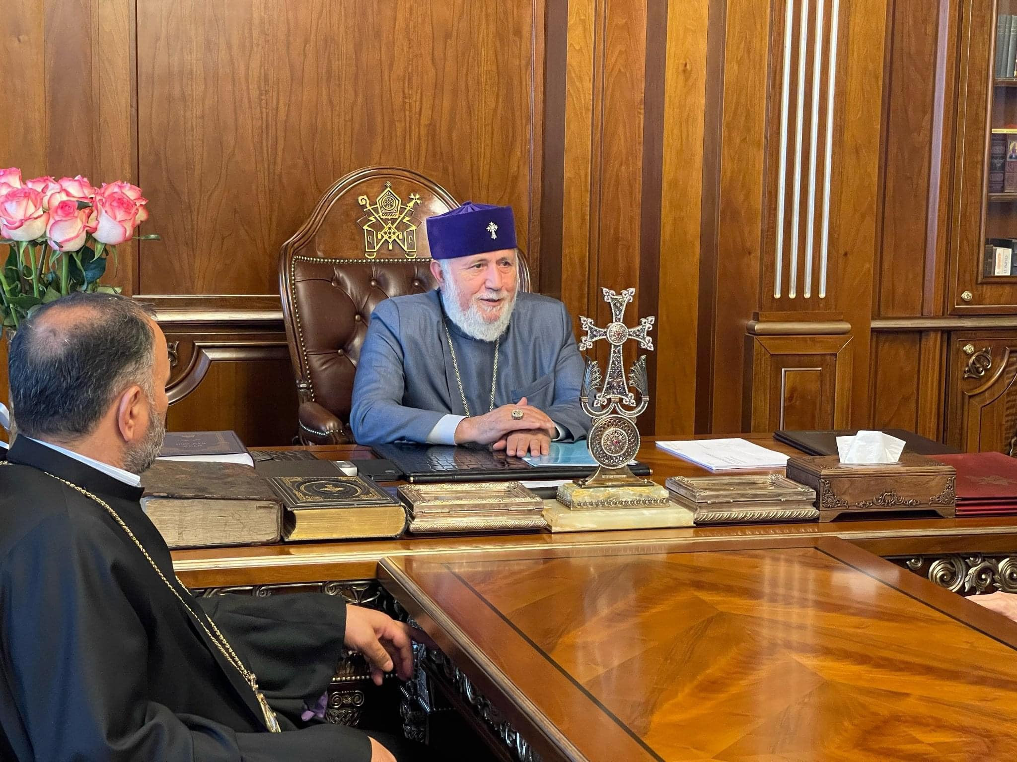 Ամենայն Հայոց Կաթողիկոսը և Արցախի պետնախարարը քննարկեցին ներկա պայմաններում արցախահայության առջև ծառացած մարտահրավերները և 44-օրյա պատերազմի հետևանքների հաղթահարմանն ուղղված քայլերը։ Այս առումով կարևորվեց համազգային ներուժի և ջանքերի մեկտեղումը՝ ի զորակցություն Արցախի ժողովրդի։