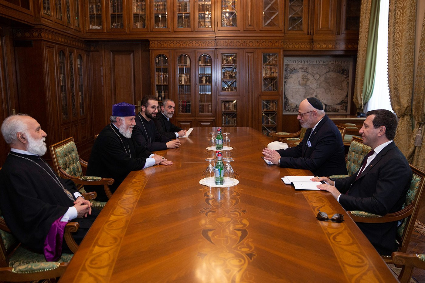Զրույցի ընթացքում անդրադառնալով երկու ժողովուրդների պատմական առնչակցություններին ու ընդհանրություններին՝ Նորին Սրբությունը ցավով խոսեց անցյալ դարում երկու ժողովուրդներին պատուհասած ողբերգությունների՝ Հոլոքոստի ու Հայոց Ցեղասպանության մասին, ինչպես նաև անդրադարձ կատարեց Սփյուռքում երկու ժողովուրդների զավակների միջև ձևավորված բարեկամական հարաբերությանը: