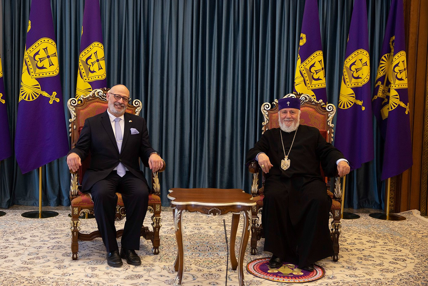 Շնորհավորելով դեսպանին պաշտոնը ստանձնելու առթիվ՝ Ամենայն Հայոց Կաթողիկոսն իր բարեմաղթանքները բերեց վերջինիս: