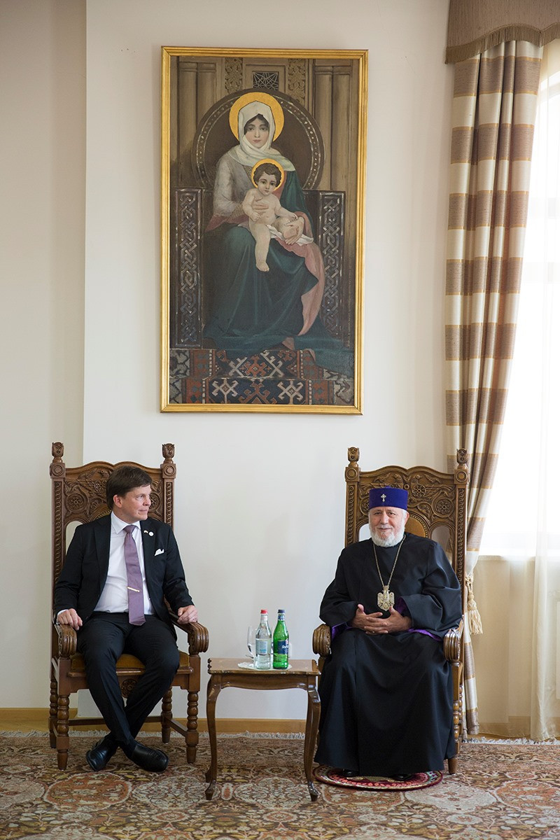 Զրույցի ընթացքում Նորին Սրբությունը գոհունակությամբ արձանագրեց, որ երկու երկրների միջև հարաբերությունները սերտանում են՝ նպաստելով փոխգործակցության զարգացմանը: Այս առիթով Ամենայն Հայոց Կաթողիկոսն իր գնահատանքը հայտնեց Շվեդիայի Թագավորությանը Հայաստանին ցուցաբերվող զորակցության համար` մասնավորապես անդրադառնալով նաև խորհրդարանի կողմից Հայոց ցեղասպանության ճանաչման և դատապարտման բանաձևի որդեգրման կարևորությանը հետագայում մարդկային կյանքում նման ոճիրների կանխարգելման առումով: