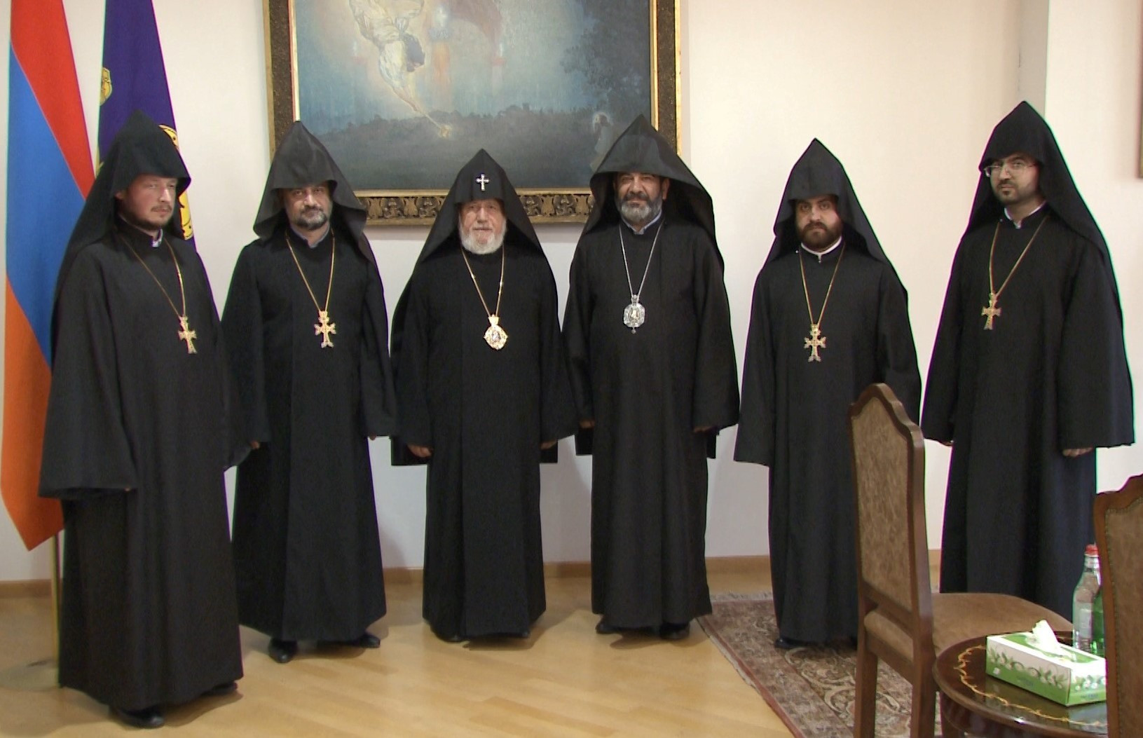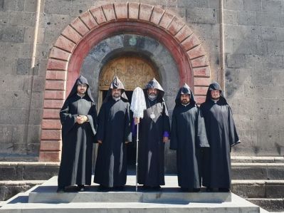 Բարի ծառայության մաղթանքով Ամենայն Հայոց Կաթողիկոսը նորաթուխ վարդապետներին շնորհեց ակնակուռ լանջախաչեր: