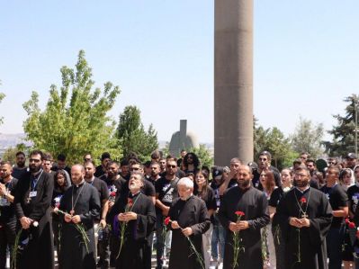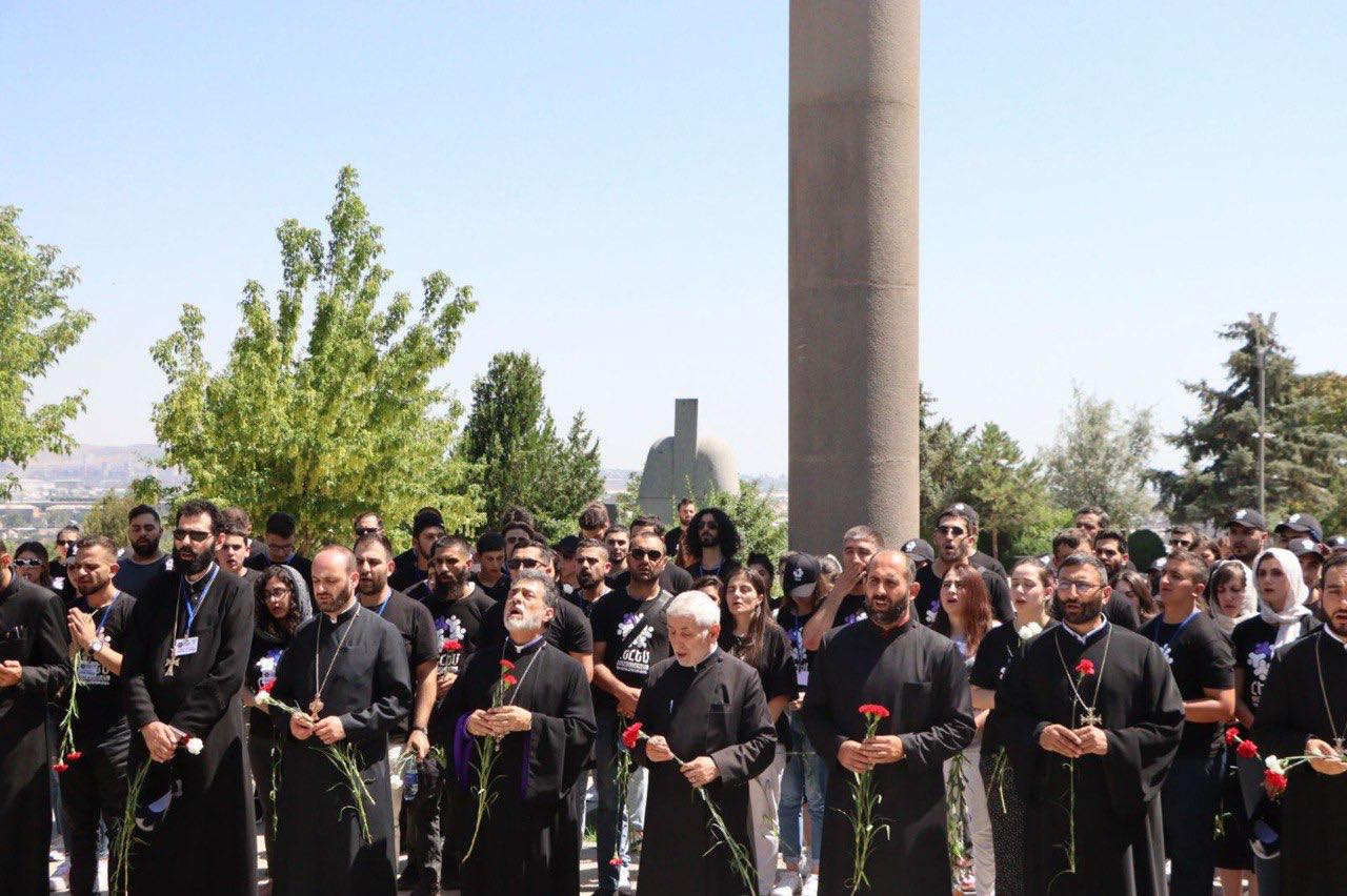 Այնուհետև երիտասարդ ուխտավորները մեկնեցին Եռաբլուր, որտեղ միասնական աղոթք բարձրացրեցին նահատակ զինվորների հոգիների հանգստության և խաղաղության համար, ծաղիկներ խոնարհեցին նրանց շիրիմներին։