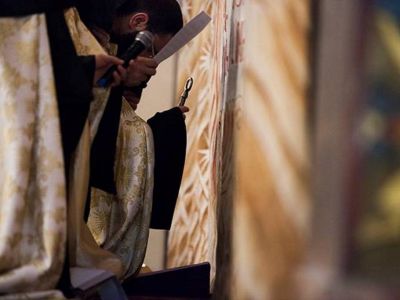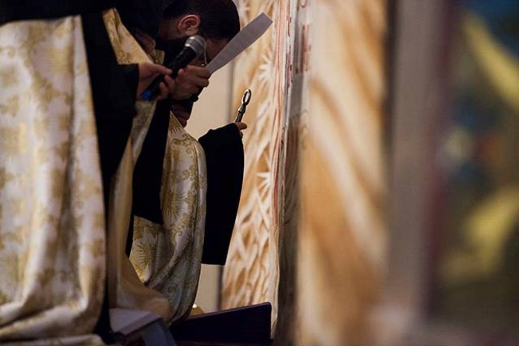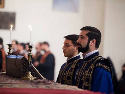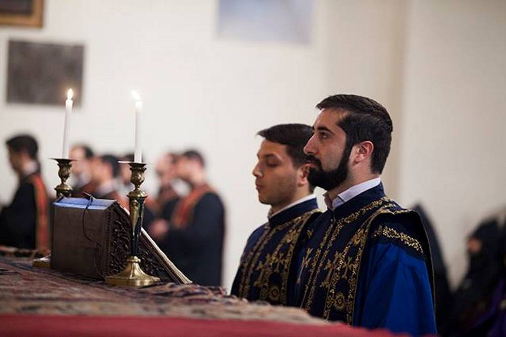 Ավագ խորանի վրա` փակ վարագույրի առջև, Մայր Աթոռի միաբաններ Գերաշնորհ Տ. Մուշեղ եպիսկոպոս Բաբայանը, Հոգեշնորհ Տ. Շահե ծ. վարդապետ Անանյանը և Հոգեշնորհ Տ. Պարթև վարդապետ Բարսեղյանը հաջորդաբար երգեցին «Բաց մեզ, Տէ՛ր» շարականը, որից հետո բացվեց Ավագ խորանի վարագույրը: