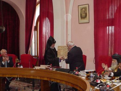 Ի նշան փոխադարձ սիրո եւ հարգանքի` Հայոց Հայրապետը ԳԱԱ-ին նվիրեց Ս. Էջմիածնի Ավետարանի նմանահանությունը: