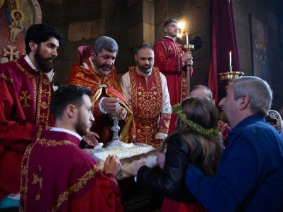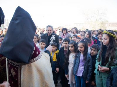 Սուրբ Պատարագի ավարտից հետո Սուրբ Գայանե վանքի շրջափակում կատարվեց մանուկների օրհնության կարգ, որի ընթացքում Ամենայն Հայոց Հայրապետը վերստին իր օրհնությունը բաշխեց տոնի առիթով Մայր Աթոռ ժամանած երեխաներին:
