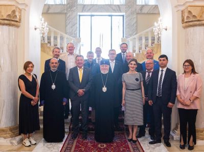 Դեսպան Ենգիբարյանը, Ամենայն Հայոց Կաթողիկոսին ներկայացնելով հյուրերին, անդրադարձավ պատվիրակության այցի նպատակներին: