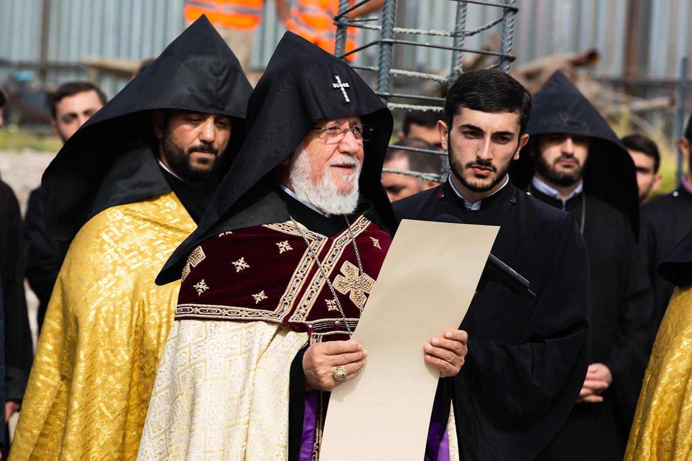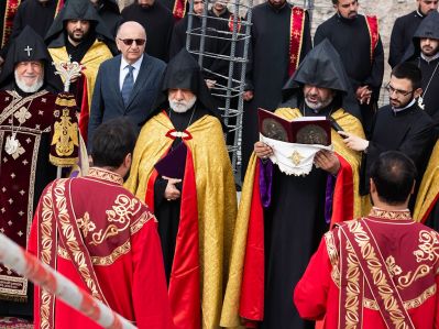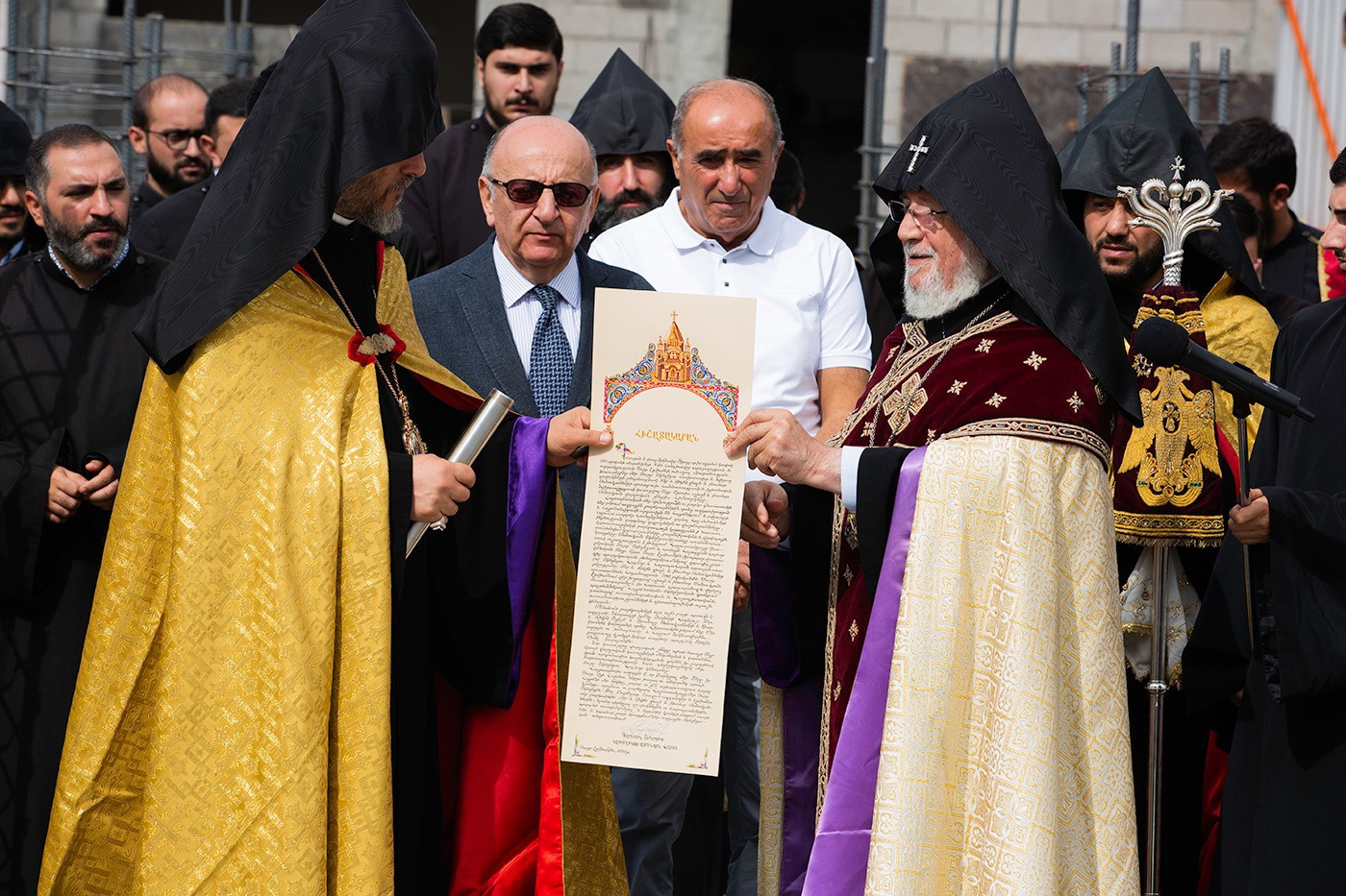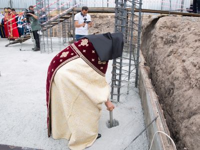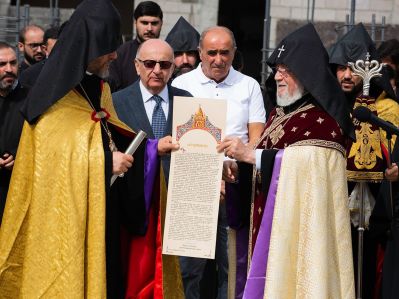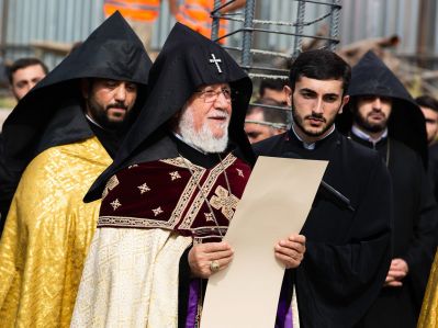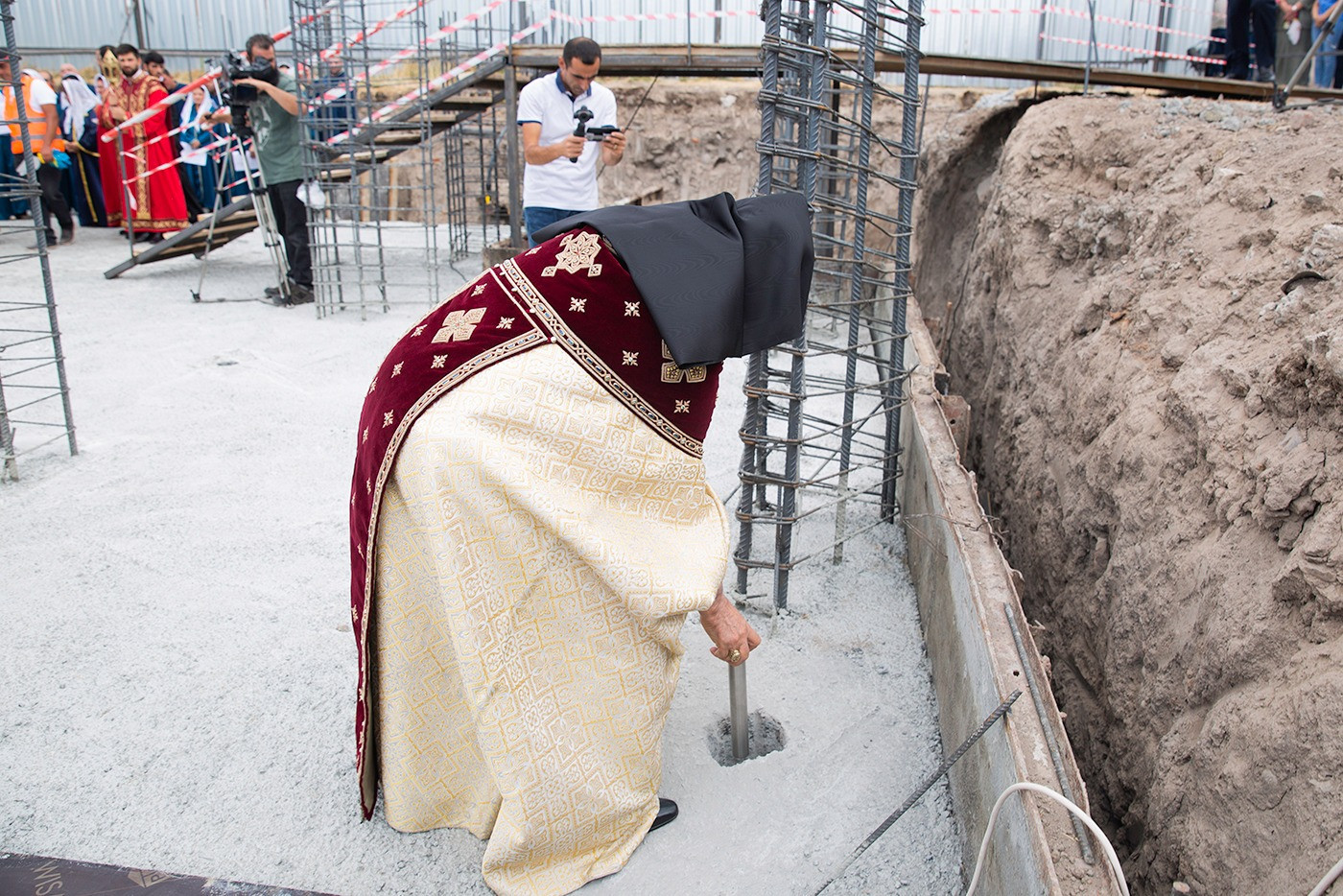 Ապա Նորին Սրբությունն ընթերցեց հիմնօրհնեքի առիթով կազմված հիշատակարանը, որն այնուհետև զետեղվեց կառույցի հիմքերում։