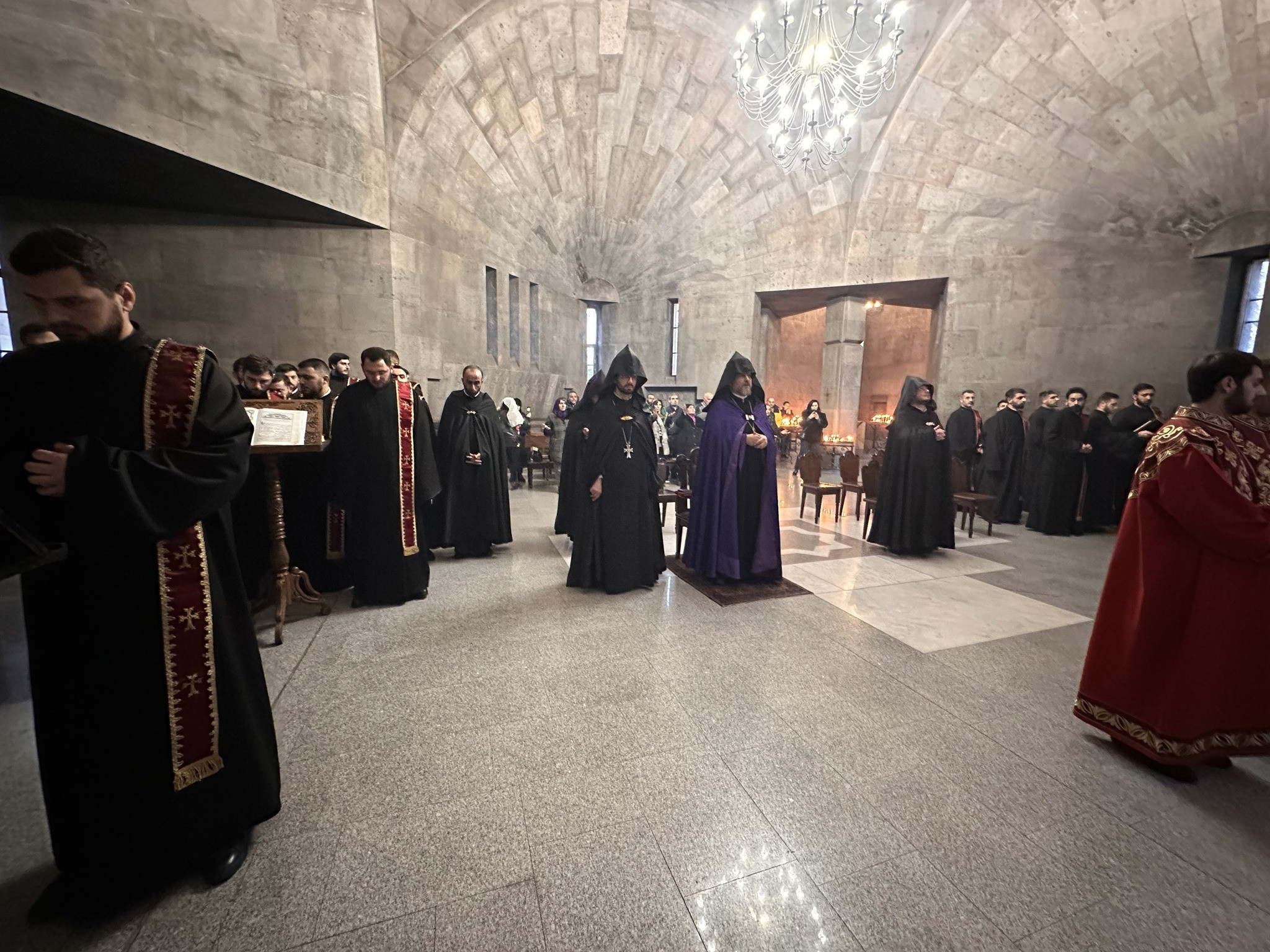 Հաջորդ օրը՝ դեկտեմբերի 26-ին, Առավոտյան ժամերգության ավարտին Մայր Աթոռի Լուսարարապետ Գերաշնորհ Տ. Մուշեղ եպս. Բաբայանը սարկավագների տոնի առիթով շնորհավորեց Սուրբ Էջմիածնում իրենց սպասավորությունը բերող միաբան սարկավագներին: