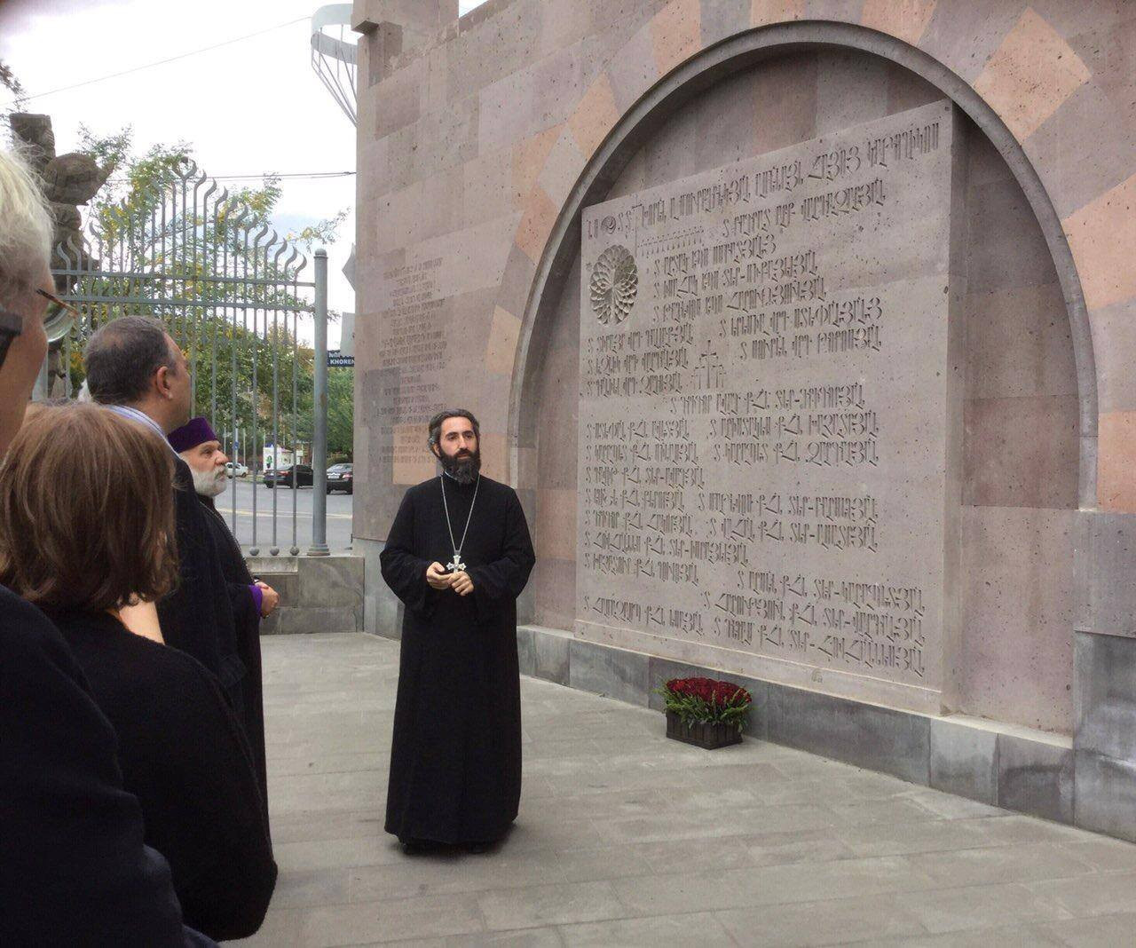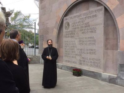 Գիտաժողովի ավարտին Միածնաէջ Մայր Տաճարի շրջափակում ամփոփված Խորեն Ա Մուրադբեկյան Կաթողիկոսի շիրմաքարի մոտ կատարվեց աղոթք Հայրապետի հոգու հանգստության համար: