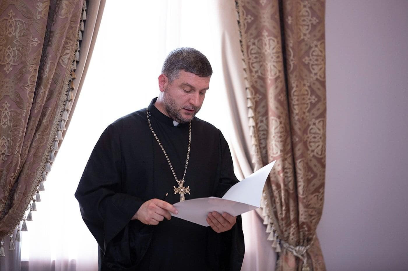 Արարողությունը բացվեց Տերունական աղոթքով, ապա երեկույթի մասնակիցներին ողջունեց Մայր Աթոռի Դիվանատան Ներեկեղեցական հարաբերությունների գրասենյակի տնօրեն Արժանապատիվ Տ. Պարույր ավագ քահանա Ավետիսյանը:
