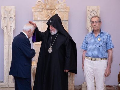 Կոնդակների ընթերցումից հետո Ամենայն Հայոց Հայրապետը Հայ Եկեղեցու շքանշաններով զարդարեց մեծարյալների կուրծքը` վերստին բերելով նրանց Հայրապետական իր օրհնությունն ու բարեմաղթանքները: