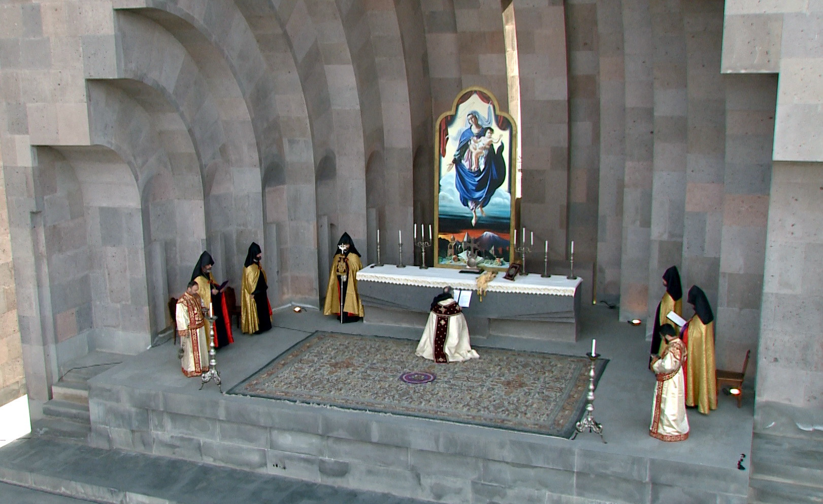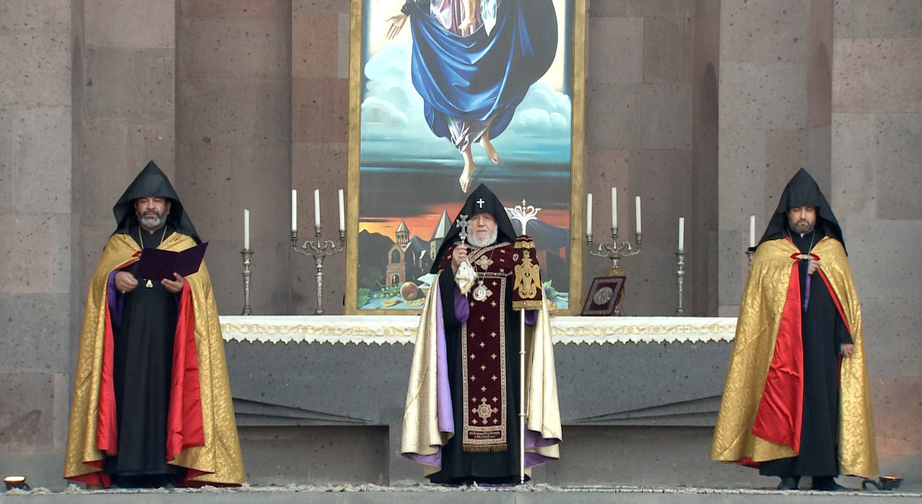 Սիրելիներ, աղոթական այս պահին ի դեմս համայն հայության, Մեր սրտում ունենալով նաև ապաքինման կարոտ Մեր զավակներին, խոնարհվեցինք Սուրբ Գրիգոր Լուսավորչի մասունքակիր Աջի առջև և հայրաբար օրհնեցինք ձեզ, որ զորանաք հավատով ու սիրով, գոտեպնդվեք հույսով, զինվեք համբերությամբ և փորձության այս օրերը դարձնեք հնարավորություն՝ առանձնության մեջ խորհելու կյանքի ու հոգևոր արժեքների կարևորության, միմյանց հանդեպ հոգատարության, մեր երկրի ու ժողովրդի առջև ծառացած մարտահրավերների հաղթահարման և ապագայատեսիլ իրագործումների մասին: Ստեղծված իրավիճակում մենք ամենքս կոչված ենք խստագույնս հետևելու պետական պատկան մարմինների ցուցումներին, առավելագույն սթափություն ու զգոնություն դրսևորելու, որպեսզի պատճառ չդառնանք վարակի տարածման, չվտանգենք մեր, մեր հարազատների ու հայրենակիցների առողջությունը: