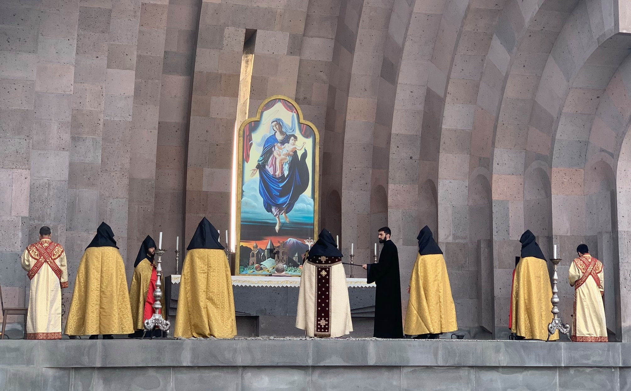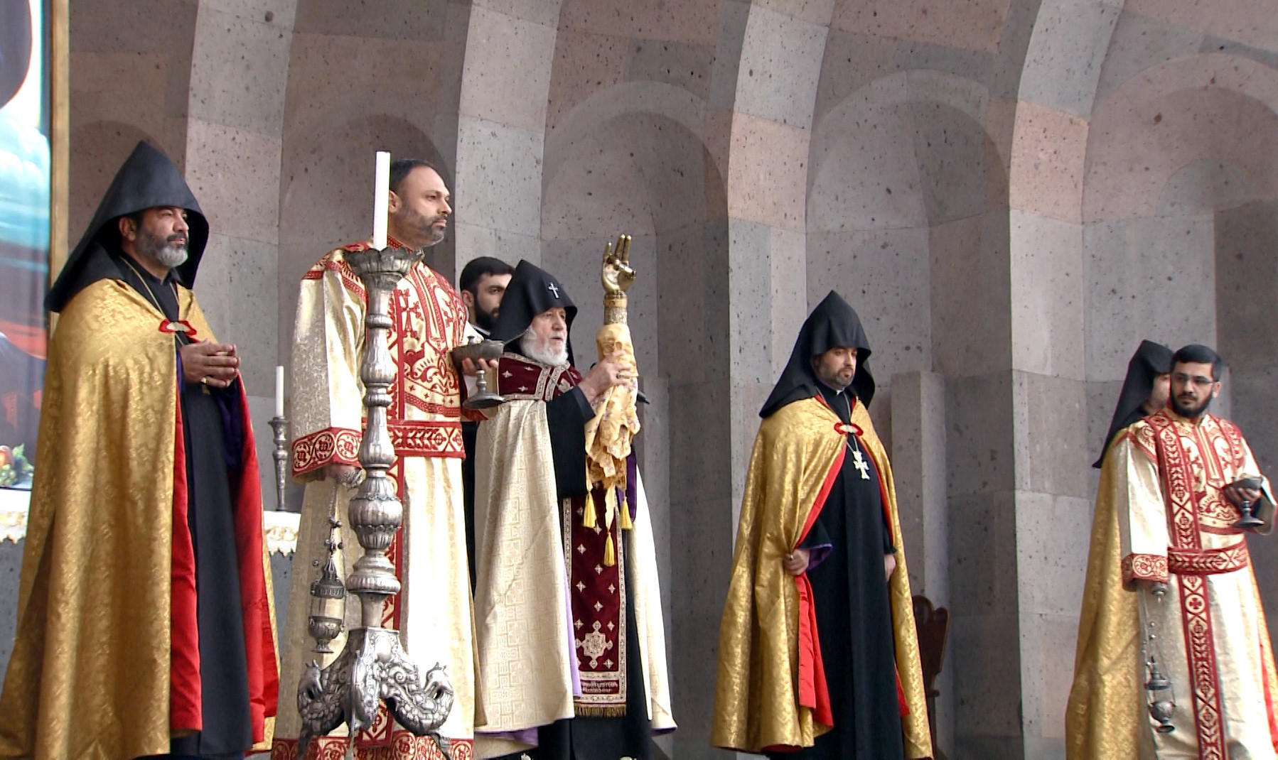Այս առիթով դուրս էր բերվել Մայր Աթոռում պահվող Հայոց Եկեղեցու մեծագույն սրբություններից՝ մեր հավատքի հայր Սուրբ Գրիգոր Լուսավորչի Աջը, որով արարողության ընթացքում Ամենայն Հայոց Կաթողիկոսն օրհնեց Հայոց աշխարհն ու մեր ժողովրդին՝ հայցելով բազմաչարչար Հայրապետի բարեխոսությամբ Երկնավոր Տիրոջ զորակցությունն ու օգնությունը՝ աշխարհին և մեր ժողովրդին պատուհասած համավարակի դիմագրավման համար։