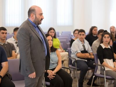 Հանդիպմանը դպրոցի հայոց լեզվի և պատմության ուսուցիչ Բարեշնորհ Հովհաննես սարկավագ Գյումրույանը, նշեց, որ աշակերտների մեծամասնությունը առաջին անգամ են Հայաստանում և դպրոցում գեղեցիկ ավանդույթ է ձևավորվել, ըստ որի 10-րդ դասարանի աշակերտները ուխտավորաբար այցելում են Հայաստան և անպայմանորեն Սուրբ Էջմիածին՝ ծանոթանալու պատմական, ազգային, հոգևոր և մշակութային արժեքներին: