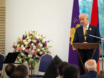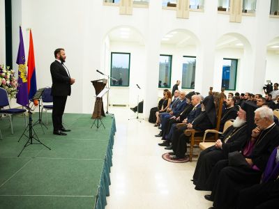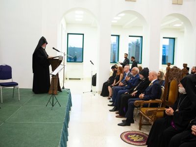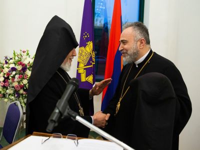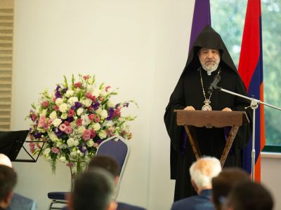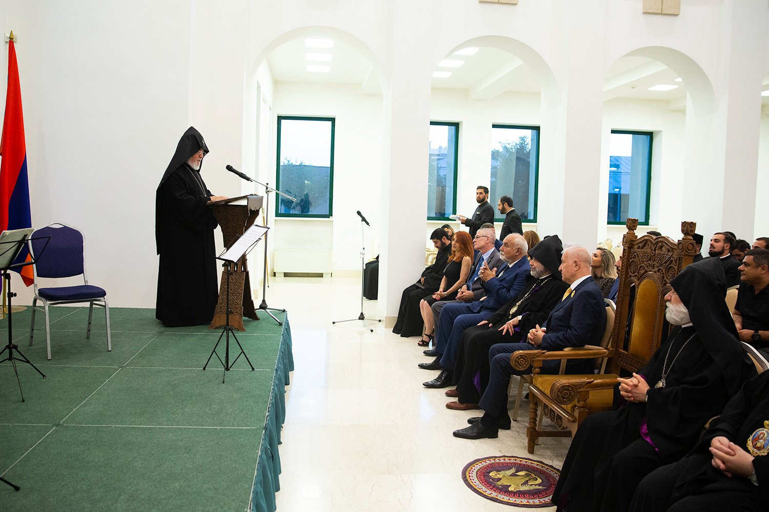 Այնուհետև ներկաներին իր օրհնության խոսքը բերեց Ամենայն Հայոց Կաթողիկոսը։ Անդրադառնալով ավելի քան վեց հարյուրամյակ առաջ պատմական Հայաստանի տարբեր վայրերից Ռումինիայում ապաստանած հայ ժողովրդի զավակների կողմից հայկական համայնքի հիմնադրմանը և այդ հյուրընկալ երկրում հայորդիների հոգևոր ու ազգային կյանքին՝ Նորին Սրբությունն ընդգծեց․ «Նվիրական հիշատակներ ունենք Ռումինիայում՝ դարերի խորքից եկող վանական ու եկեղեցական կառույցներ, մշակութային և պատմական հուշարձաններ։ Այստեղ գործել են հայկական տպարաններ, թերթեր ու պարբերականներ, հայազգի նշանավոր պետական, քաղաքական ու հասարակական գործիչներ, արվեստի ու մշակույթի, կրթության նվիրյալներ, ինչը վկայությունն է բեղուն հայ կյանքի և արձանագրված մեծ հաջողությունների: