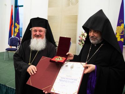 Միջոցառման ընթացքում Ռումին Ուղղափառ Եկեղեցու Պատրիարքական փոխանորդ Գերաշնորհ Տ․ Վարլաամ եպիսկոպոս Պլոյեստանուլն Ամենայն Հայոց Կաթողիկոսին փոխանցեց Ռումին Ուղղափառ Եկեղեցու Դանիել Պատրիարքի կողմից Վեհափառ Հորը շնորհված Ռումինիայի պահապան Սուրբ Անդրեաս առաքյալի շքանշան-պանակեն, իսկ Գերաշնորհ Տ. Տաթև եպիսկոպոս Հակոբյանին՝ «Սուրբ Հովհաննես-Հակոբոս» շքանշան-պանակեն։
