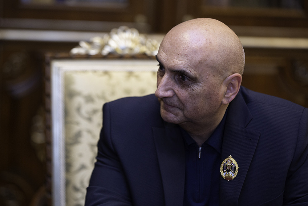 Գոհունակությամբ ենք անդրադառնում Ձեր գործունեությանը, որ բարեզարդված է հայրենի Արցախ աշխարհի խաղաղության պահպանման, Պաշտպանության բանակի կայացման ու զորացման գործին, ինչպես նաև արցախաբնակ Մեր սիրելի զավակների հոգևոր-եկեղեցական կյանքին բերած գնահատարժան վաստակով: Տասնամյակներ շարունակ զինվորական պատասխանատու պաշտոններում Դուք արդյունավորել եք Ձեր ծառայությունը, միաժամանակ աստվածահաճո ձեռնարկումներով սատար եղել Արցախի թեմի հոգեխնամ սպասավորության իրականացմանը։ Մեր Սուրբ եկեղեցու առաքելության արգասավորմանը մասնակից լինելու նախանձախնդիր ոգով, Դուք լինելով Շուշիի Սուրբ Հովհաննես եկեղեցու Ծխական խորհրդի ատենապետը, ազնիվ բարերարությամբ հիմնովին վերանորոգեցիք պատմական այս եկեղեցին՝ պարսպապատելով ու բարեկարգելով հարակից տարածքը, կառուցելով երիցատուն ու մատաղատուն։ Ձեր գովարժան հանձնառությունը և իրագործած բարերարությունները, ինչպես նաև շարունակաբար սատարումները Տիրախնամ թեմի հոգեշահ ծրագրերին, վկայությունն է բարեպաշտ հայորդուդ աստուածսիրության. Առաքելական մեր Սուրբ եկեղեցու հանդեպ ջերմ սիրո հավատարմության»: