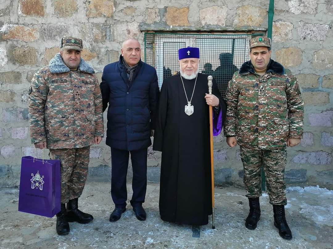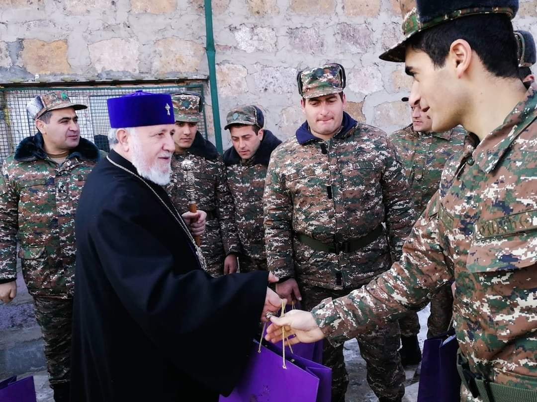 Սուրբ Ծննդյան տոնին ընդառաջ Աﬔնայն Հայոց Կաթողիկոսն այցելեց մարտական դիրքեր