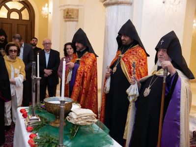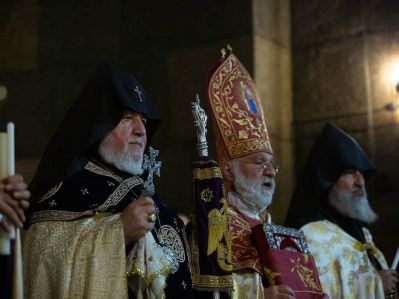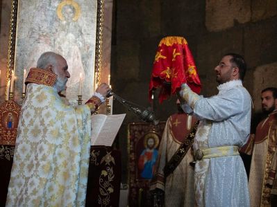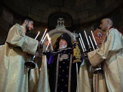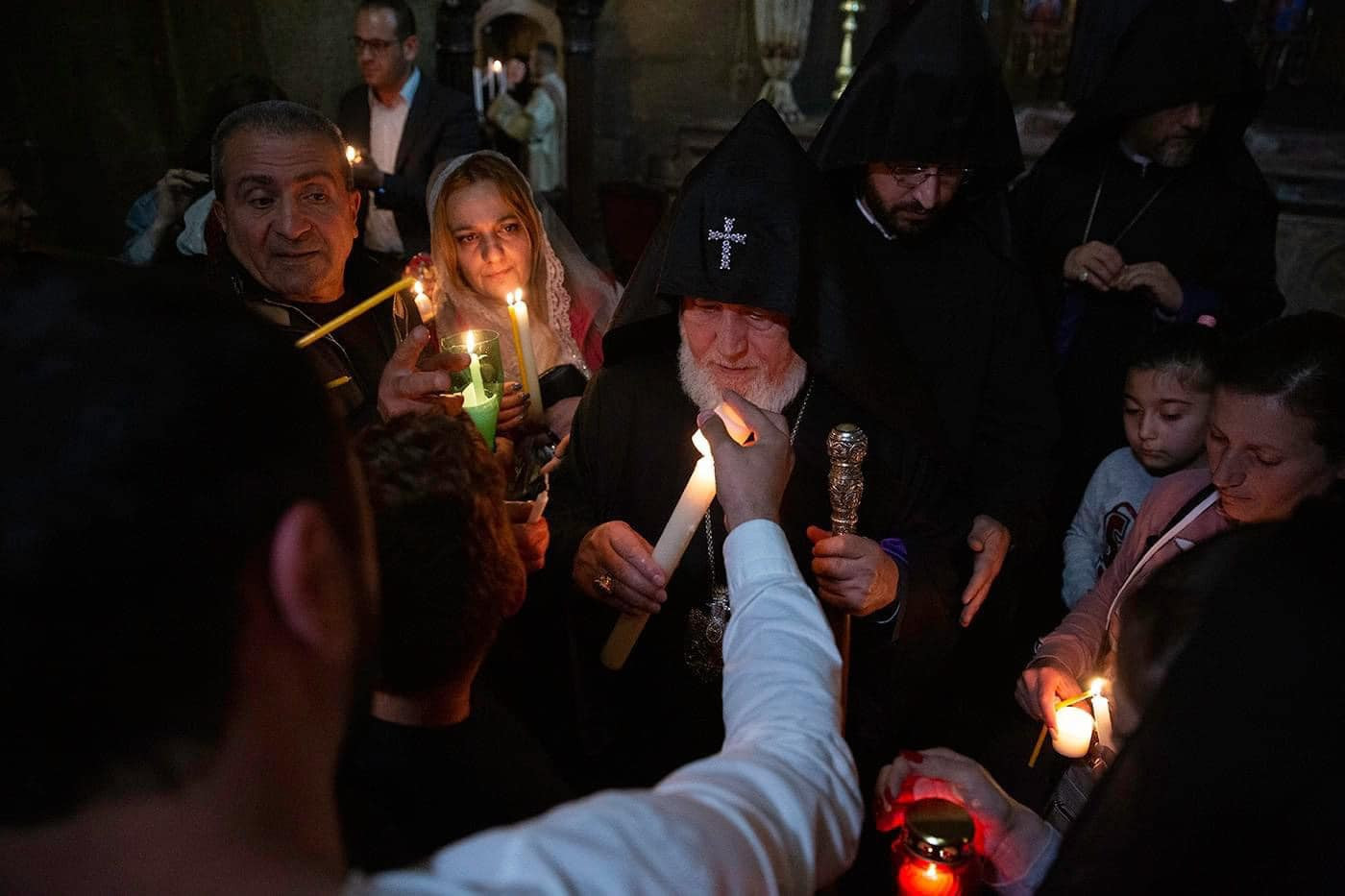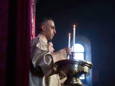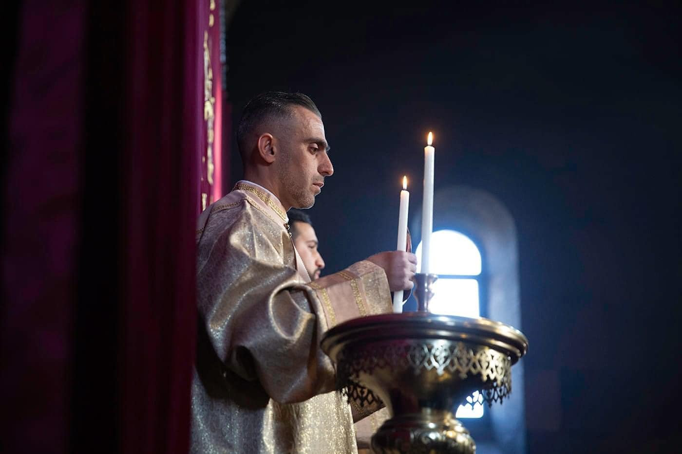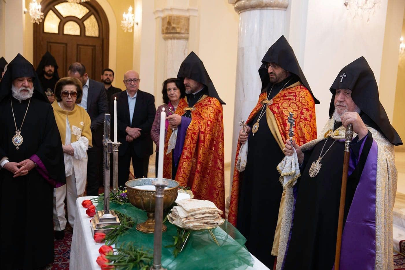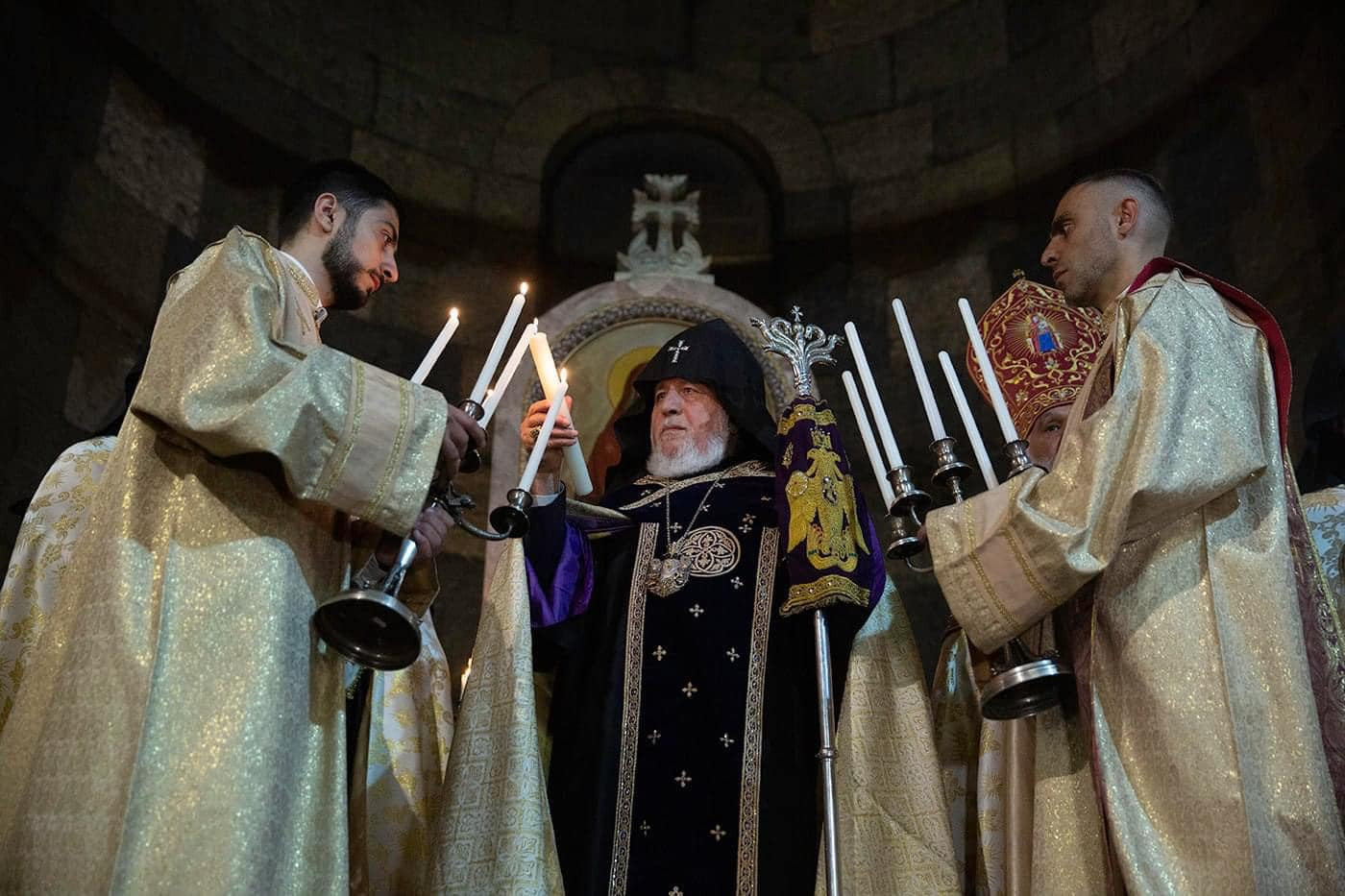 Սուրբ Պատարագի ավարտին Ամենայն Հայոց Կաթողիկոսը բարձրացավ Սուրբ Խորան և Սուրբ Սեղանի կանթեղից վառեց Տեր Հիսուս Քրիստոսին խորհրդանշող կենսատու մոմը, որը բաշխվեց հավատացյալներին: