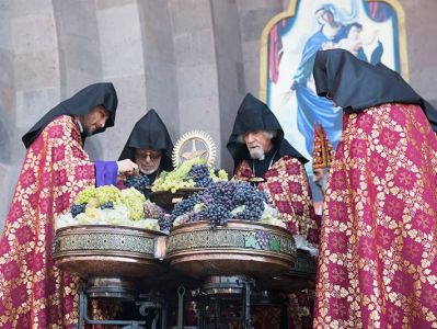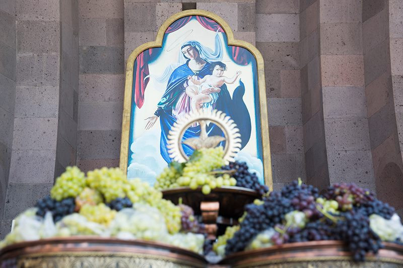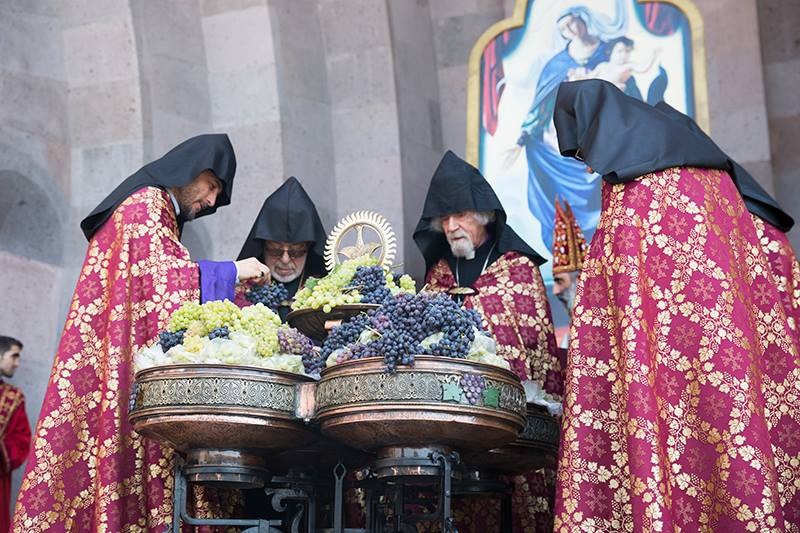 Վերջում օրհնված խաղողի ողկույզները բաժանվեցին հավատավոր ժողովրդին: