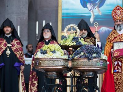 Ս. Պատարագի ավարտին, հանդիսապետությամբ Գերաշնորհ Տ. Ոսկան արքեպիսկոպոս Գալփաքյանի, Ս. Տրդատի բաց խորանում կատարվեց «Խաղողօրհնեքի» հանդիսավոր արարողությունը, որի ժամանակ հոգեպարար շարականի երգեցողությունից հետո ընթերցվեց օրվա խորհուրդն ամփոփող ավետարանական հատվածը, այնուհետև Ս. Ներսես Շնորհալու «Խաղողի օրհնության» աղոթքը:
