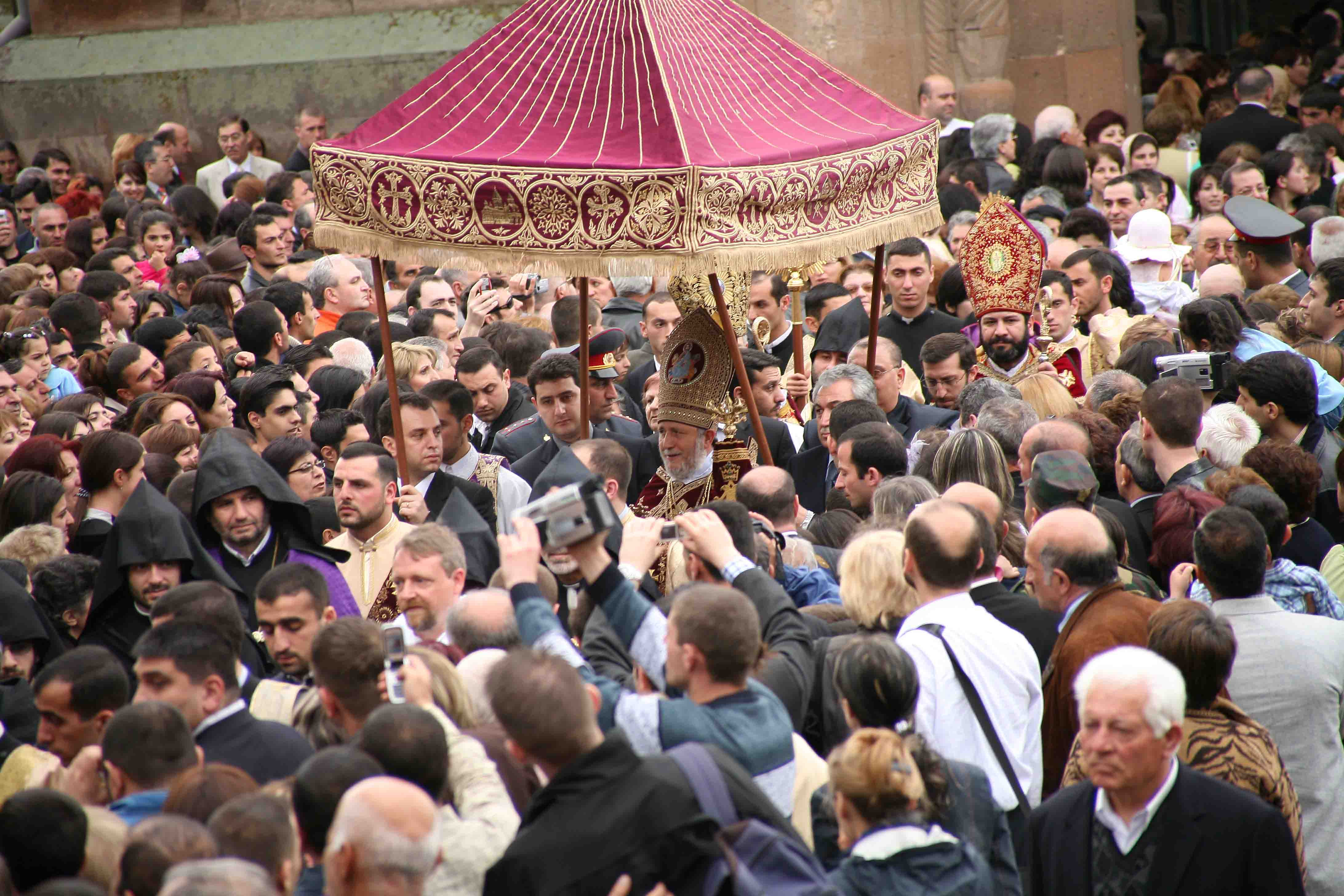 Տոնի առիթով օրհնությամբ Ն.Ս.Օ.Տ©Տ© Գարեգին Բ Ամենայն Հայոց Կաթողիկոսի կազմակերպվել էր թափոր-երթ: Առավոտյան կանուխ, Սուրբ Հռիփսիմե վանքի մոտից, Մայր Աթոռ Սուրբ Էջմիածնի եւ ՀԲԸՄ-ի հայորդյաց տների սաների առաջնորդությամբ հարյուրավոր երիտասարդներ շարականների երգեցողության եւ թմբուկների ձայների ներքո շարժվեցին դեպի Միածնաէջ Սուրբ տաճար, ուր դիմավորեցին Հայրապետական թափորը: