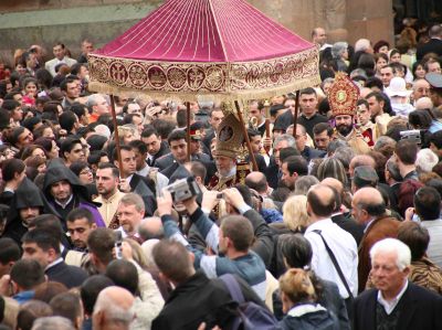 Առավոտյան ժամը 10.30-ին Ն.Ս.Օ.Տ©Տ© Գարեգին Բ Ծայրագույն Պատրիարք եւ Ամենայն Հայոց Կաթողիկոսը, իր օրհնությունները բաշխելով խուռներամ հավատացյալ ժողովրդին, հոգեւորականների մեծահանդես թափորով ուղղվեց դեպի Մայր Տաճար, ուր մատուցեց Սուրբ եւ Անմահ Պատարագ եւ Տիրոջ Սուրբ Հարության տոնի առիթով Հայրապետական իր պատգամը հղեց համայն հայ ժողովրդին:
