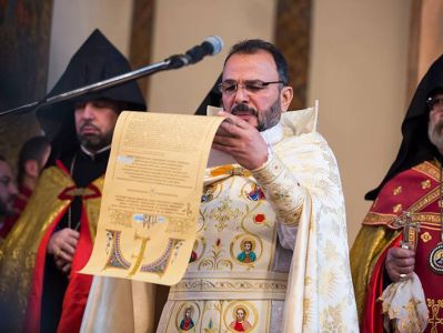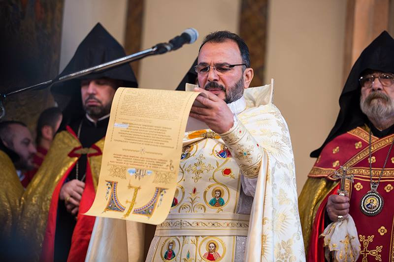 «Էջ Միածինն ի Հօրէ» շարականի երգեցողության ներքո ներս բերվեց Հայրապետական Սրբատառ կոնդակը, որն ընթերցեց Մայր Աթոռի Քրիստոնեական դաստիարակության կենտրոնի տնօրեն Գերաշնորհ Տ. Վարդան եպիսկոպոս Նավասարդյանը: