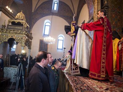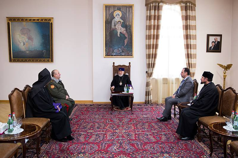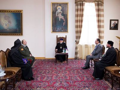 Պատարագի արարողությունից առաջ Ամենայն Հայոց Կաթողիկոսն ընդունեց ՀՀ Պաշտպանության նախարարին և ՀՀ ԶՈՒ ԳՇ պետին` Հայոց բանակի 25-րդ հոբելյանի կապակցությամբ ի դեմս նրանց շնորհավորելով հրամանատարներին ու զինվորներին: