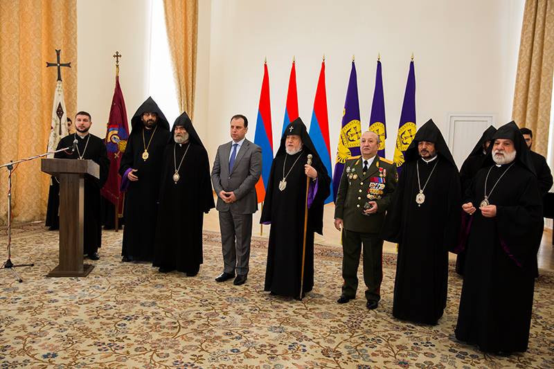 Շնորհաբաշխությունից հետո Գարեգին Բ Ամենայն Հայոց Հայրապետը վերստին իր օրհնության ու գնահատանքի խոսքը բերեց ՀՀ ԶՈՒ բարձրագույն սպայակազմին` մաղթելով, որ միշտ հաղթական լինի Հայոց բանակը: